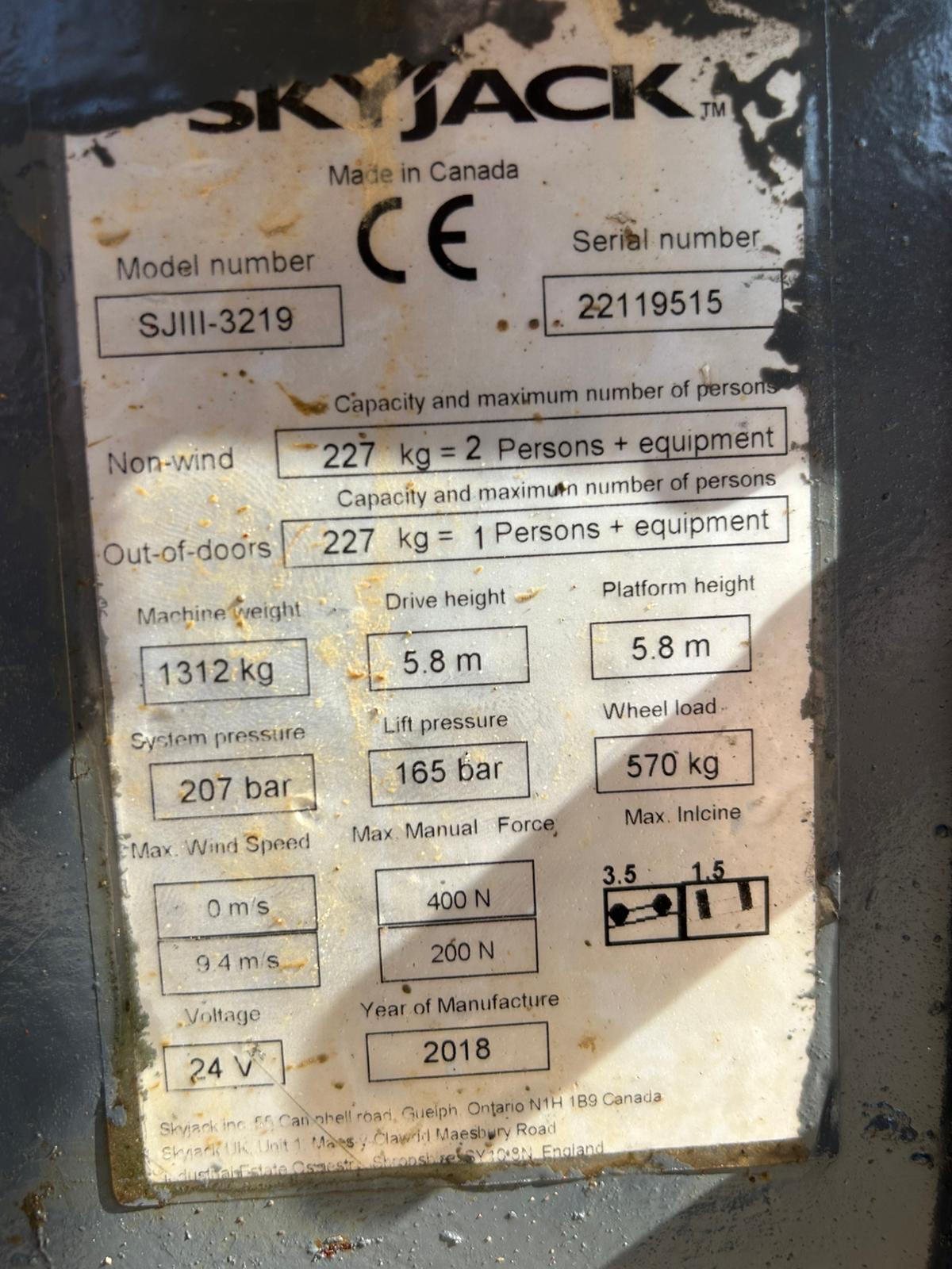 2018 Skyjack SJ3219 7.8m Scissor Lift Access Platform ( Genie, JLG) MEWP